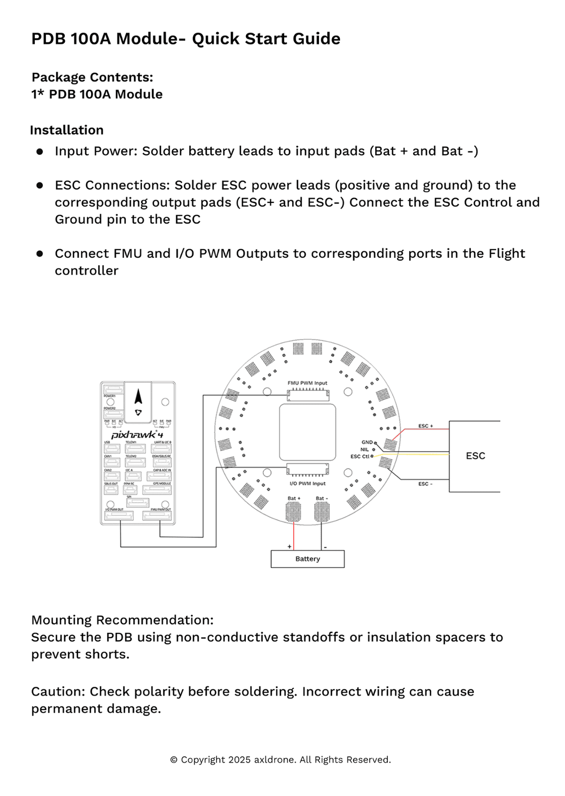 High Current Capacity: Handles up to 100 Amps, Ideal for Multi-Rotor builds requiring substantial power distribution