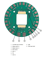 The PDB 100A is a high-performance power management component engineered for advanced aerial and robotic platforms. Its sleek circular form‐factor and lightweight build streamline integration into quadcopters to octocopters, and various embedded systems, while minimizing added weight and drag. Rated to handle up to 100 A of continuous current, the board supplies robust power to demanding applications and supports up to 8 ESCs.